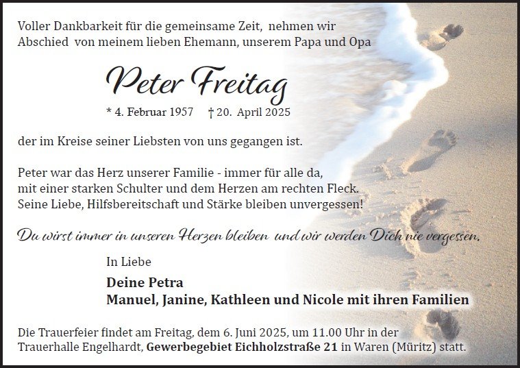 Peter Freitaggestorben am 20. April 2025